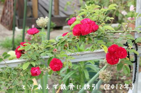 ランブラーらしく細くてひょろひょろした枝を四方八方に伸ばします。