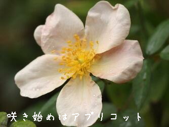 咲き始めは黄色いシベが輝く淡いアプリコット。