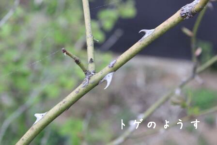トゲはフックのように曲がった長いトゲがポツポツつきます。